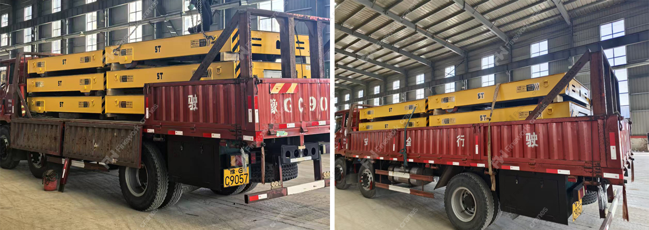 6 sets 5 ton electric Transfer Carts have been successfully produced and are about to be shipped to Australia. These electric flatbed carts are powered by high-efficiency lithium batteries, featuring zero emissions and low noise, and are suitable for short-distance indoor and outdoor transportation needs in factories and warehouses.