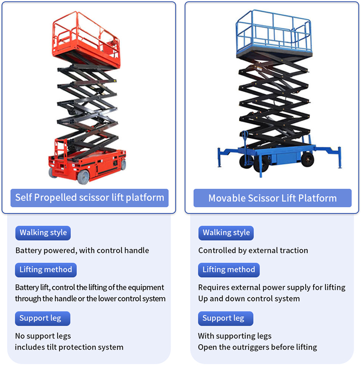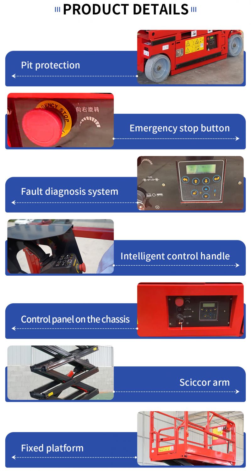Overload protection, hydraulic explosion-proof valve, and emergency descent system are standard features. Self-propelled models are equipped with intelligent safety devices such as a level alarm and a counterbalance valve.